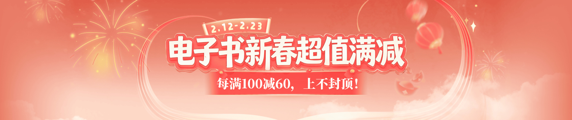 2.12-2.23,热门电子书满减折上折,每满100减60,上不封顶!